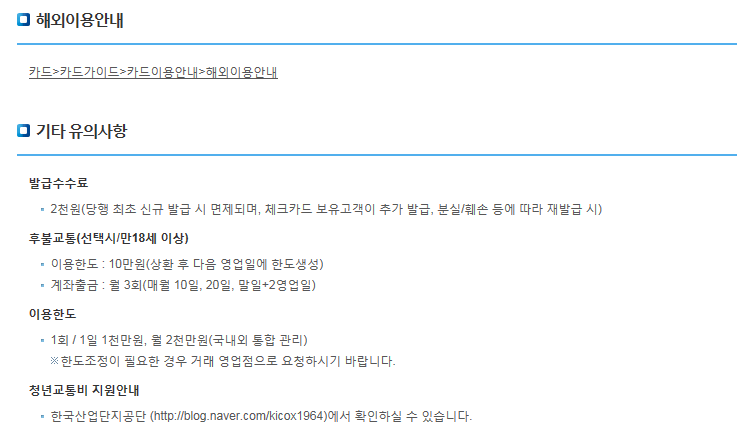 기업은행의 청년동행카드는 바우처 이용의 카드로만 사용하는 것을 추천드립니다.